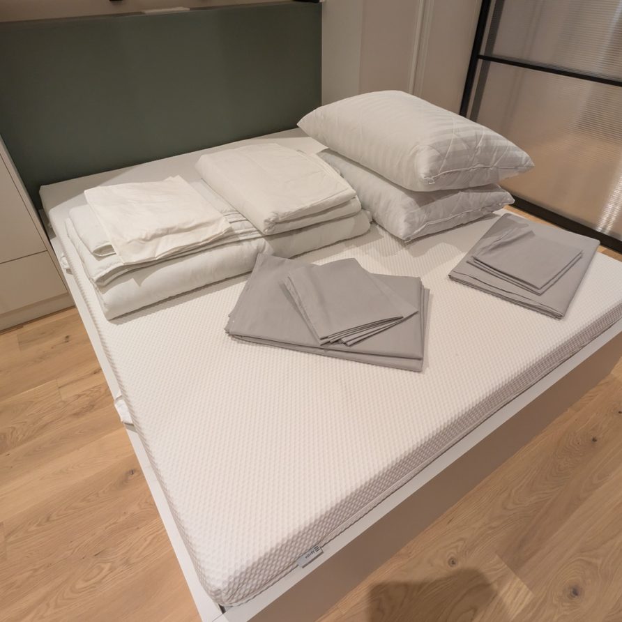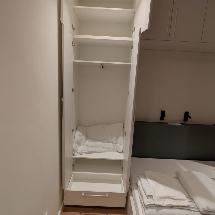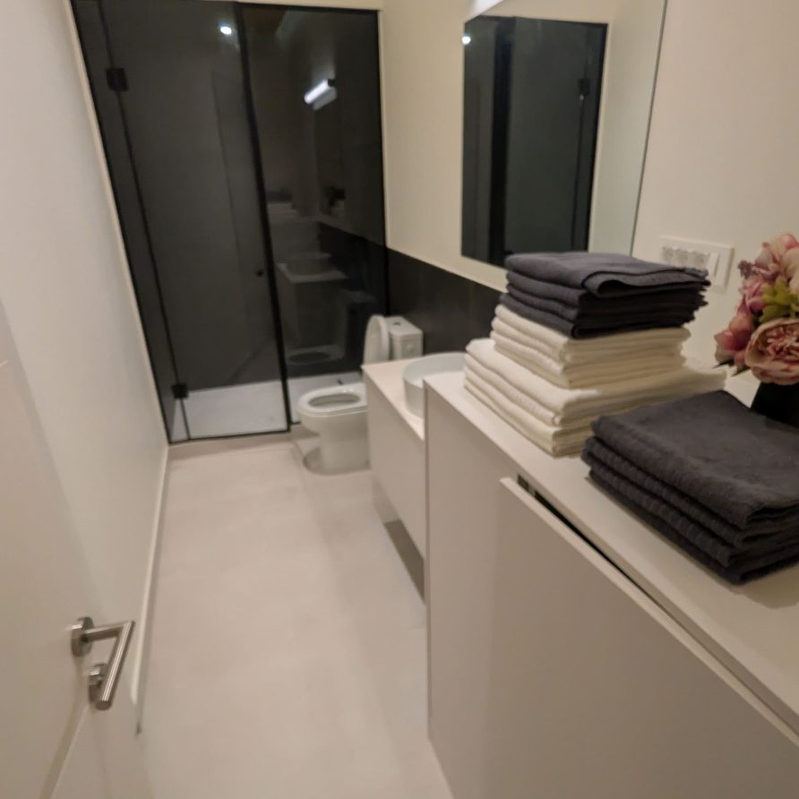 All furniture is brand new in 2025, carefully selected to complement the apartment’s modern aesthetic while ensuring comfort and practicality. The bedroom provides a peaceful retreat with new built-in wardrobes and soft ambient lighting. The bathroom has been fully renovated with large-format tiles, a walk-in rain shower, and premium contemporary fittings.