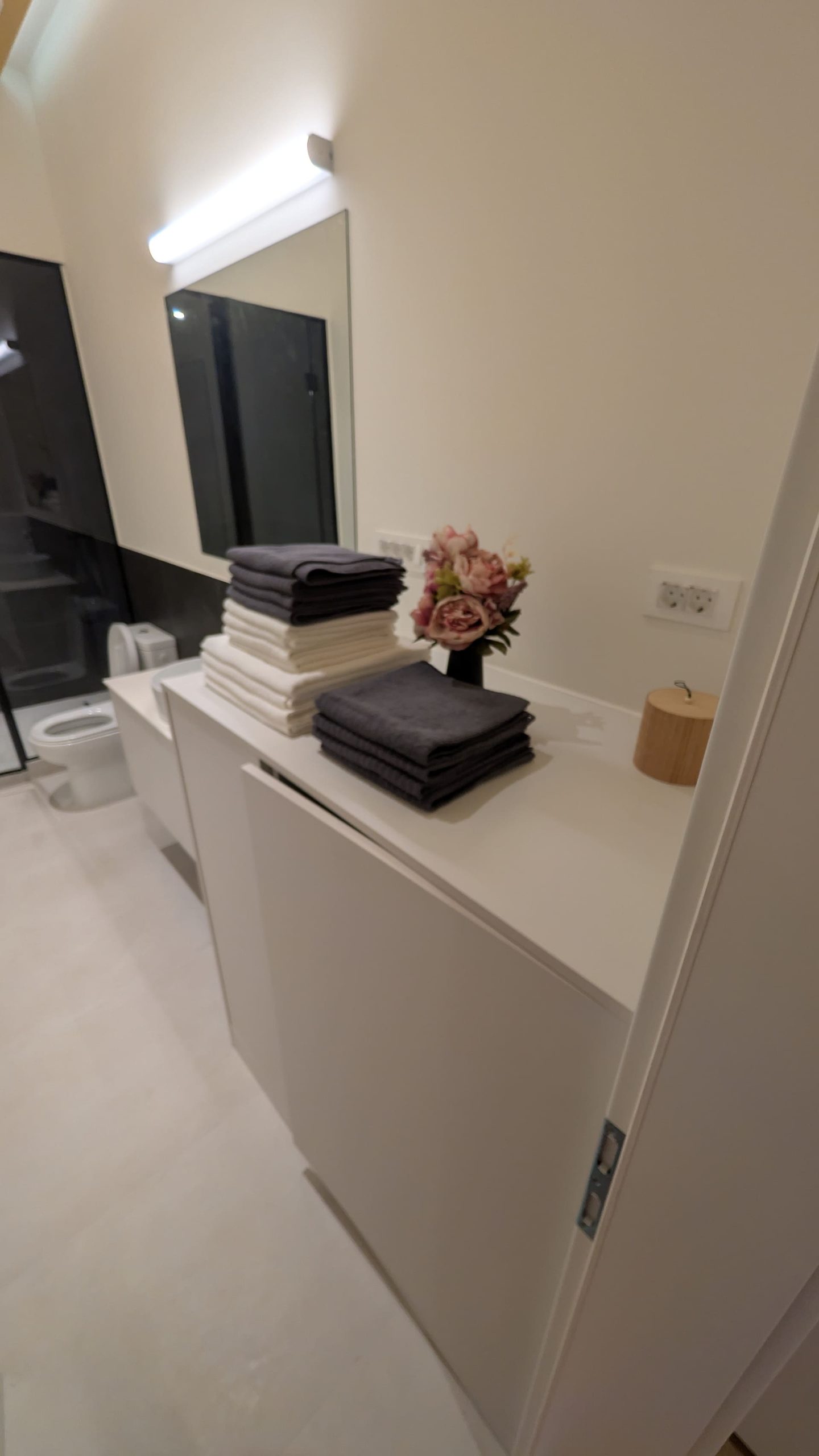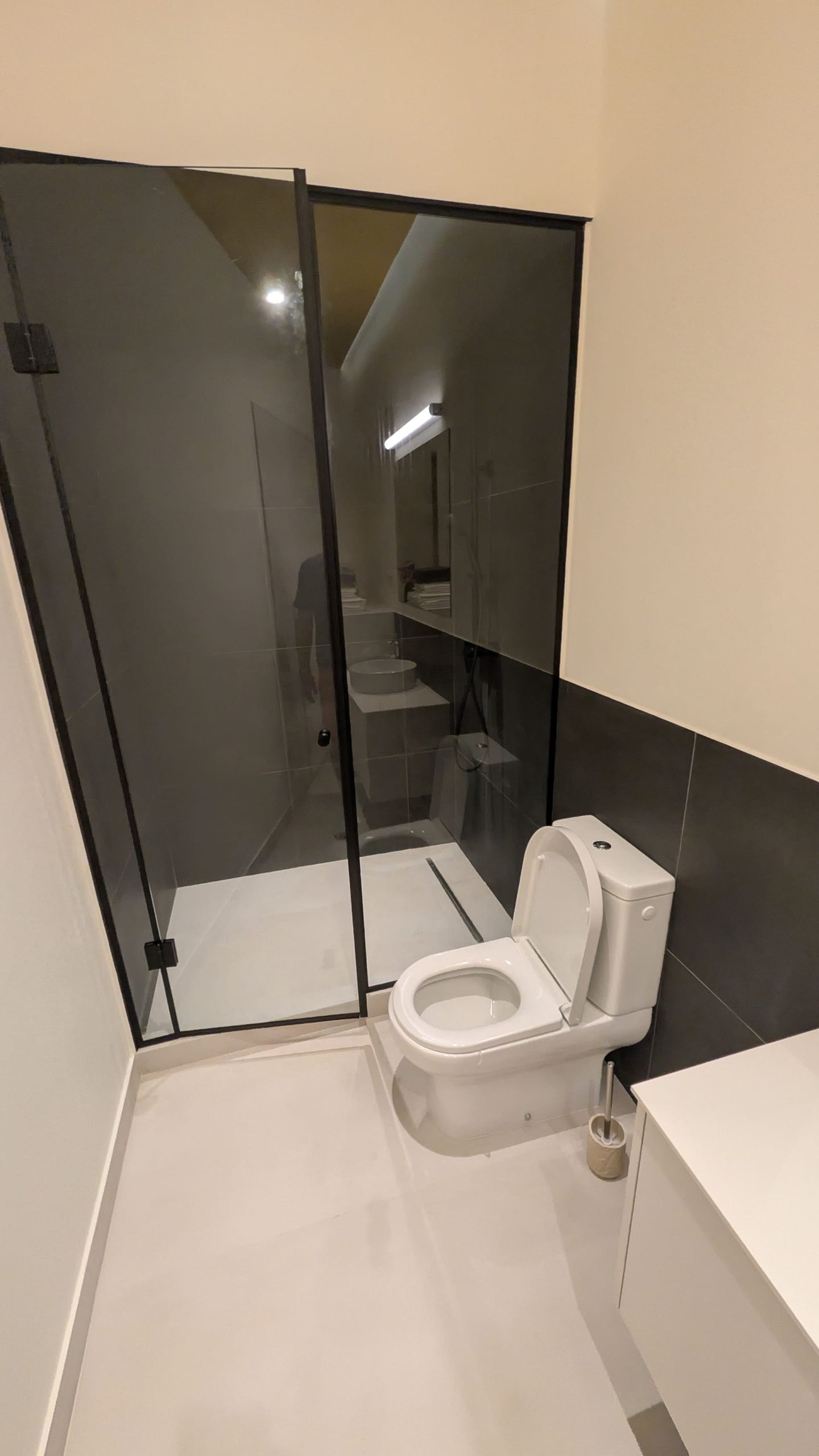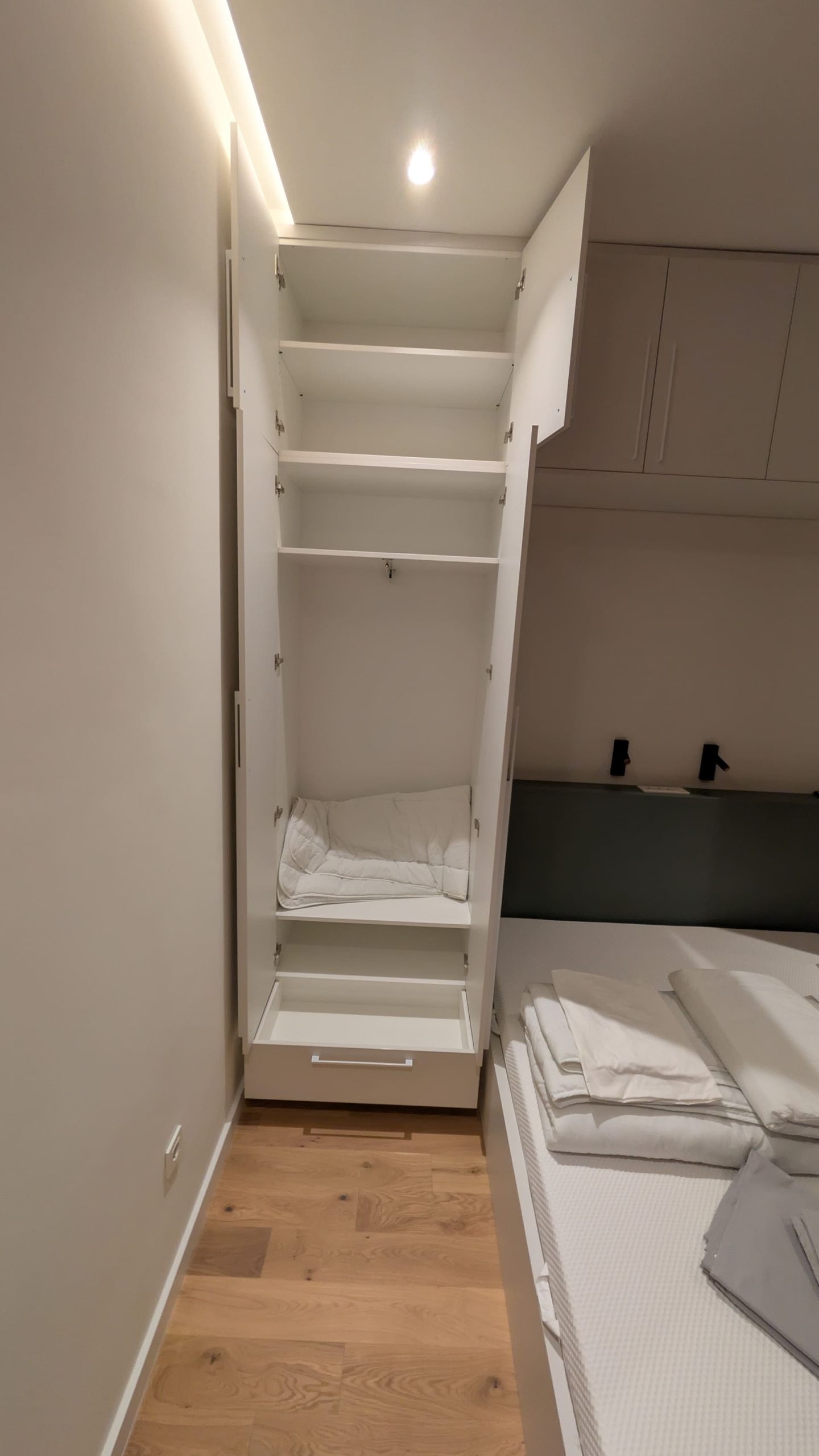 All furniture is brand new in 2025, carefully selected to complement the apartment’s modern aesthetic while ensuring comfort and practicality. The bedroom provides a peaceful retreat with new built-in wardrobes and soft ambient lighting. The bathroom has been fully renovated with large-format tiles, a walk-in rain shower, and premium contemporary fittings.